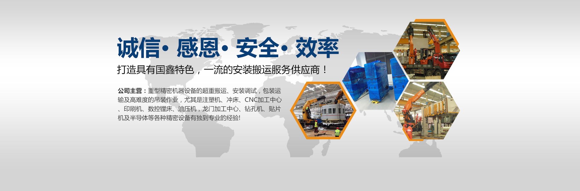 公司堅(jiān)持貫穿以“安全第一”作為一切安裝搬運(yùn)服務(wù)之基本思想,加強(qiáng)全面的質(zhì)量管理,制定詳盡的安全操作規(guī)范,培養(yǎng)訓(xùn)練有素的技術(shù)人員和高級(jí)工程師,引進(jìn)先進(jìn)的搬運(yùn)設(shè)備和測(cè)試機(jī)器,為客戶(hù)提供專(zhuān)一,高效,安全,優(yōu)質(zhì)的解決方案...